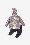Araba Desenli Kapüşonlu İçi Pamuklu Yağmurluk Bebek Takımı