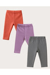 Unisex Bebek Üçlü Düz Renkli Organik Kumaş 3'Lü Tayt Seti İlkbahar Yazlık 3-12 Ay