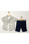 Tarz Gömlek Yaprak Desenli Belden Ayarlanabilir Kısa Kollu Şortlu 3'lü Takım Çocuk ve Bebek Giyim Öz