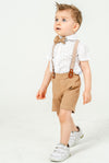 Erkek Bebek Papyonlu Askılı Gömlekli Şortlu 3'lü Takım