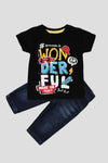 Yazı Baskılı Tişört Ve Kot Pantolon 2'li Takım