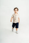 Erkek Bebek Hakim Yaka Çizgili Keten Gömlekli Şortlu Yazlık Takım