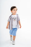 Erkek Çocuk Çizgili Gömlek Tişört ve Şort 3’lü Yazlık Takım