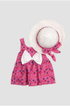 Desenli Fiyonklu Şapkalı Kız Bebek Elbisesi