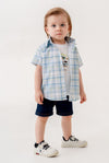 Erkek Bebek Kareli Gömlek Baskılı Tişört ve Kot Şort 3’lü Yazlık Takım