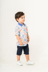 Erkek Çocuk Renkli Çiçek Desenli Polo Yaka Tişört ve Lacivert Şort 2'li Takım