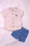 Tarz Erkek Bebek Gömlekli Yelken Desenli Belden Ayarlanabilir Kısa Kollu Şortlu 2'li Takım Çocuk ve